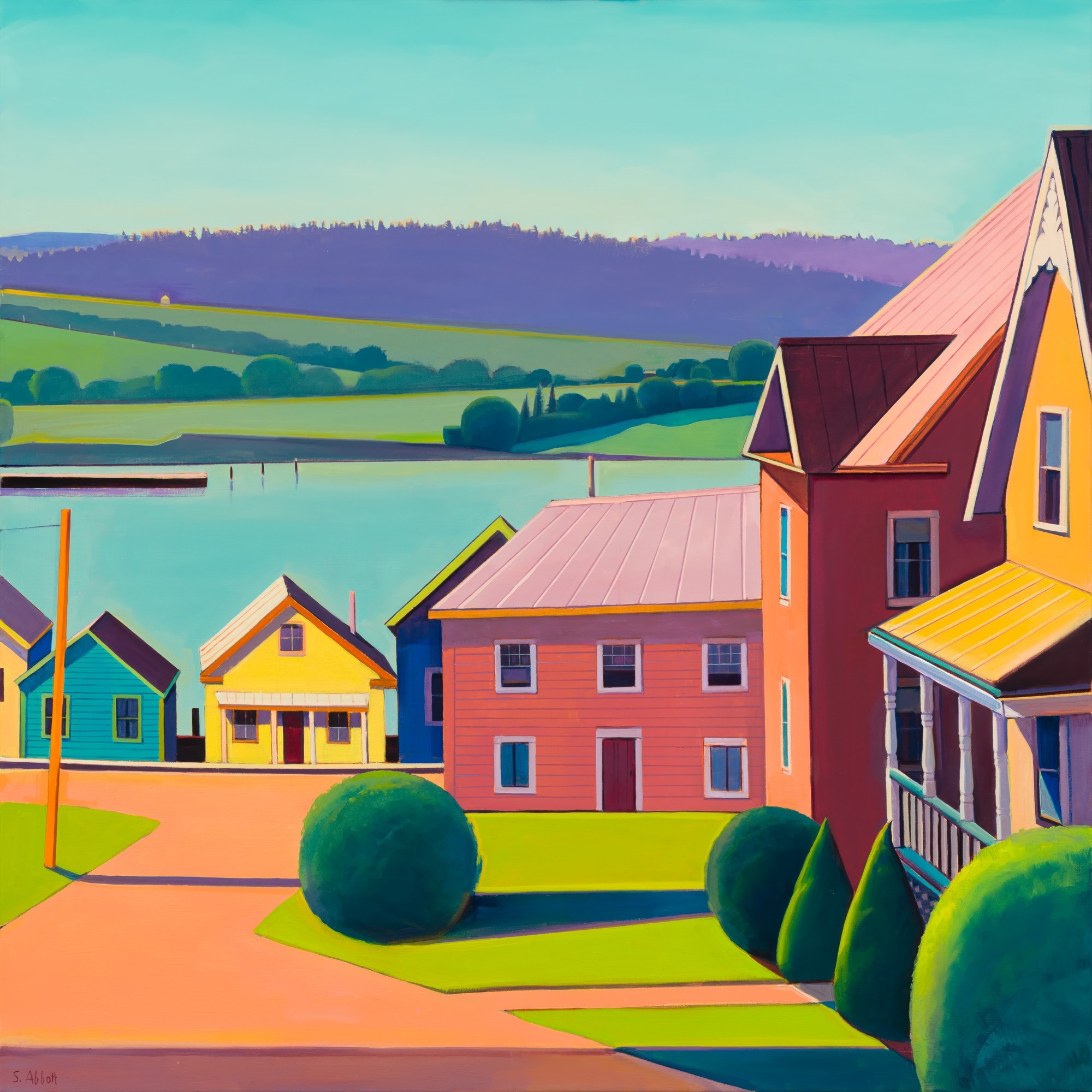 Susan Abbott works in oil and watercolor, both en plein air and in the studio. When painting her large compositions, she gathers references on-site and then allows invented colors and shapes to take over in the studio and combine with memory to create an image that’s completely new. The paintings that result from this alchemy of the real and abstract communicate to the viewer Abbott’s deep love for the familiar yet mysterious landscapes of Maine and Vermont.