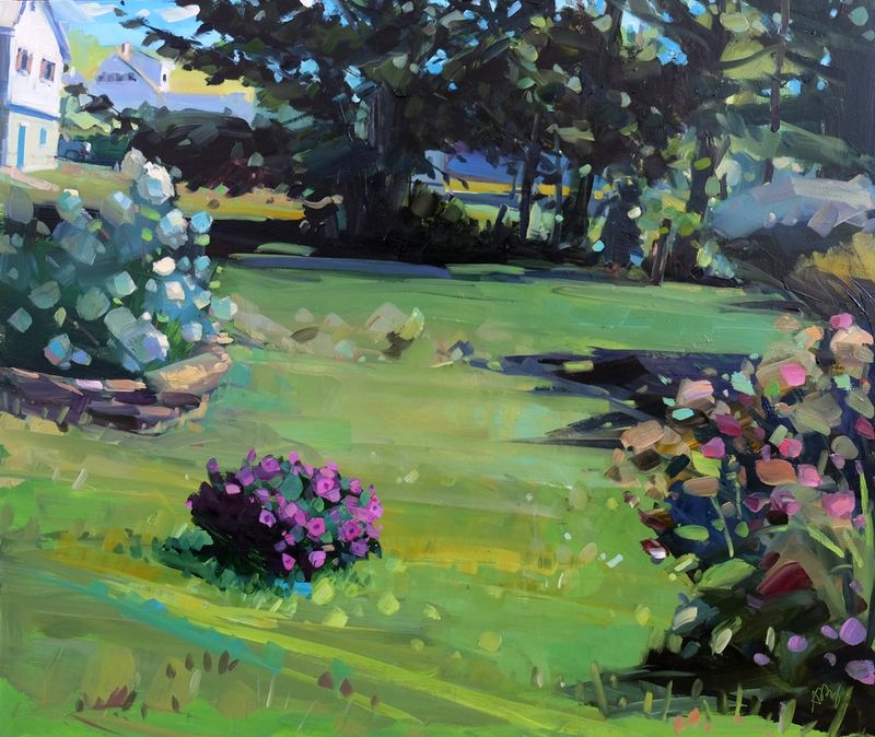 Amy Brnger has a deep affection for her home in Maine, both inside and outside. Everyday activities are meaningful to Amy, whether it’s cooking in her kitchen, looking out the windows, gardening, shoveling snow, or walking the neighborhood. She draws a lot of inspiration from these ordinary experiences in her domestic world and suspects many people can relate to this. While Amy enjoys traveling and seeing places far away, she has always loved returning home most of all. When she's not painting in and around her home environment, she also goes out and paints in some pretty special places in this beautiful state. From a local land trust flower garden farm to spots on Mount Desert Island, Amy paints both the landscape outside, but also returns home with abundant flowers and paints them in the studio, often within the confines of an interior or including a view of her neighbors’ yard ...